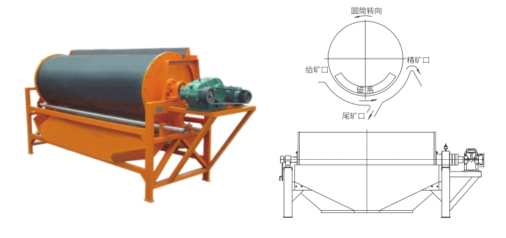 CTS型順流濕式預選機適用于濕式選別礦石粒度為6~0mm的較粗粒度強磁性物料的預選和精選,或者除去非磁性礦物中混雜的強磁性礦物。本機可以連續給礦和排礦,磁場強度大,磁場梯度高,工作間隙大,具有較高的處理能力。亦可多臺串連工作。二、示意圖
