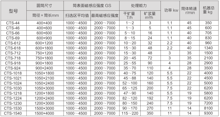 ◇筒表磁感應強度中掃選區平均值和磁感應強度值均根據不同礦物含鐵情況和不同的選別要求確定的。