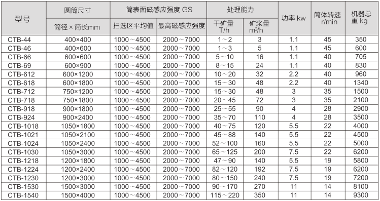◇ 筒表面磁感應(yīng)強(qiáng)度值是根據(jù)不同礦物含鐵情況和不同的選別要求確定的。磁場強(qiáng)度范圍從1000GS至7000GS均可制作。