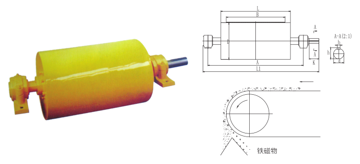 RCT型全磁滾筒與RCTG系列等同,亦稱磁滑輪或干式大塊磁選機(jī)。其內(nèi)部采用高性能強(qiáng)磁材料組成強(qiáng)力磁系,具有磁場(chǎng)強(qiáng)度高、深度大、結(jié)構(gòu)簡(jiǎn)單、使用方便、不需要維修、不消耗電力,常年使用退磁率小等特點(diǎn)。可用于水泥、磁選、礦山、鋼鐵、化工、耐火材料、垃圾處理等行業(yè)的選鐵與TD-75型、AD-80型通用固定式皮帶輸送機(jī)配套使用代替主動(dòng)輪,也可與專用皮帶輸送機(jī)配套。