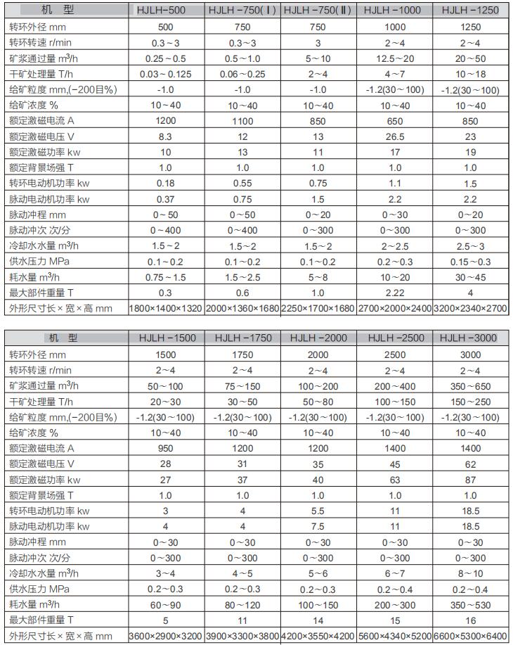 本設備的選型,原則上以礦漿通過能力為準。在實際應用中對礦物進行分選時,選礦指標會因礦漿濃度的不同而造成一定的影響,如需獲得較好的選礦指標可以根據實際需要適當降低礦漿濃度。當分選的礦物中磁性物料比例偏高時,整機的處理量將會受到磁介質面積和吸附磁性物料總量的限制,也應適當降低入礦濃度,以獲得較好的選礦指標。