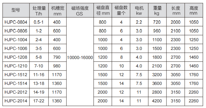 HJPC型濕法盤式磁分離機是我公司自主研發的新型高梯度磁選設備。磁場強度可以高達16000GS。是專門針對濕式非磁性礦物中清除弱磁性鐵質的設備。僅需串聯于生產工藝設備中,物料流動經過本設備,具有強大吸力的磁盤下半部分浸沒在物料中,物料經過磁盤間隙時,所有通過磁盤之間的物料均受到磁場的作用,磁性物質可以被充分吸附,弱磁性鐵質被強大的吸力吸附在磁盤表面,隨著磁盤的轉動磁性物質被帶出物料流通的通道,依靠特殊材質和結構的刮板強制卸除。本設備具有處理大流量、低含鐵量、可清除弱磁性鐵質的特點。因此廣泛應用于石英砂、鉀長石、鈉長石、云母石、硅粉、陶瓷漿料等行業。