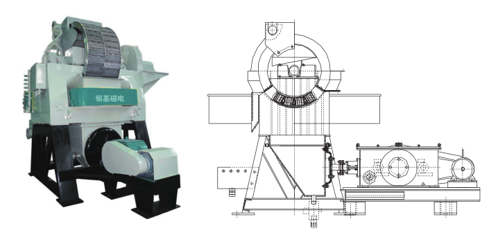 我公司HJLH型立環高梯度磁選機屬自主創新和研發,其技術創新的采用簡單易取的水作為冷卻介質,勵磁線圈采用大厚度的空心管導線,水流直接通過空芯管導線的中間,線圈的熱量用比較直接的方式傳導至水,利用水流的快速循環,將熱量帶走。二、示意圖