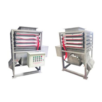 CQZ型全自動在線磁分離機安裝于流水線中以實現在線實時自動清除物料中的鐵質。自動定時控制器可以設定為連續自動實時清理,也可根據鐵質含量情況來設置清理時間間隔。其強大的磁場可以清除流動、干燥的、流動性好、粉狀的、細小顆粒中的鐵磁性物質。二、示意圖